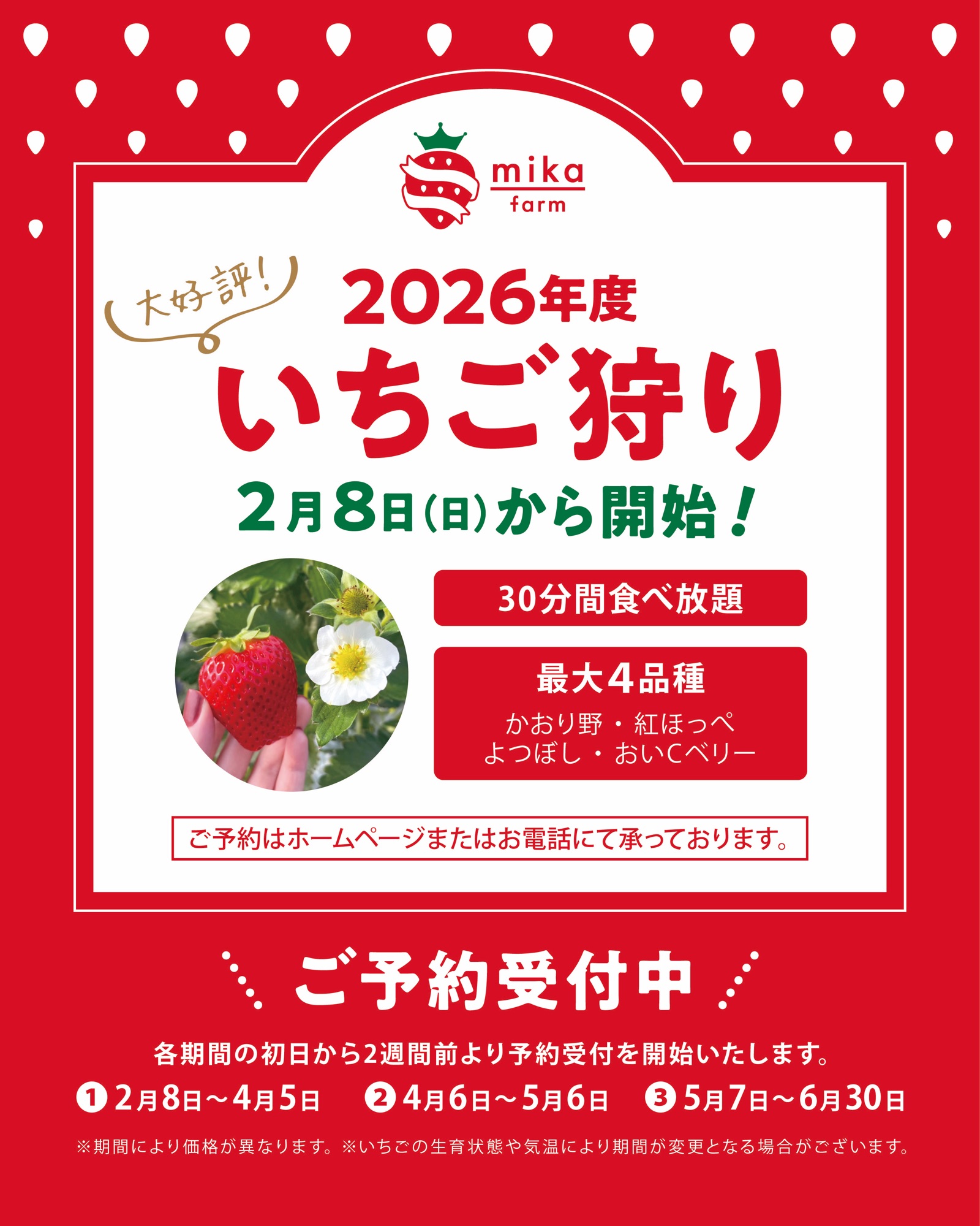 🍓✨いちご狩り予約スタートのお知らせ✨🍓
